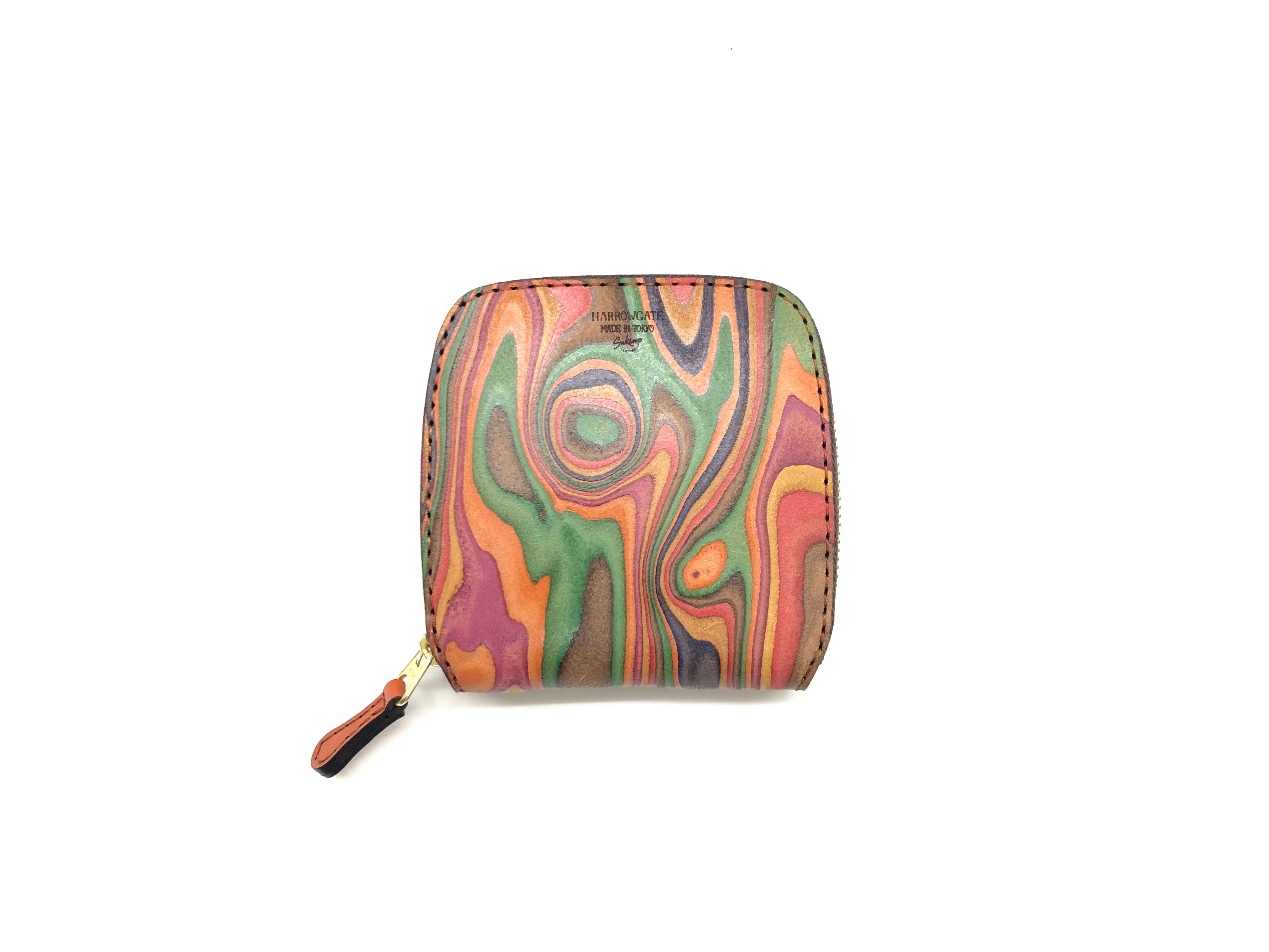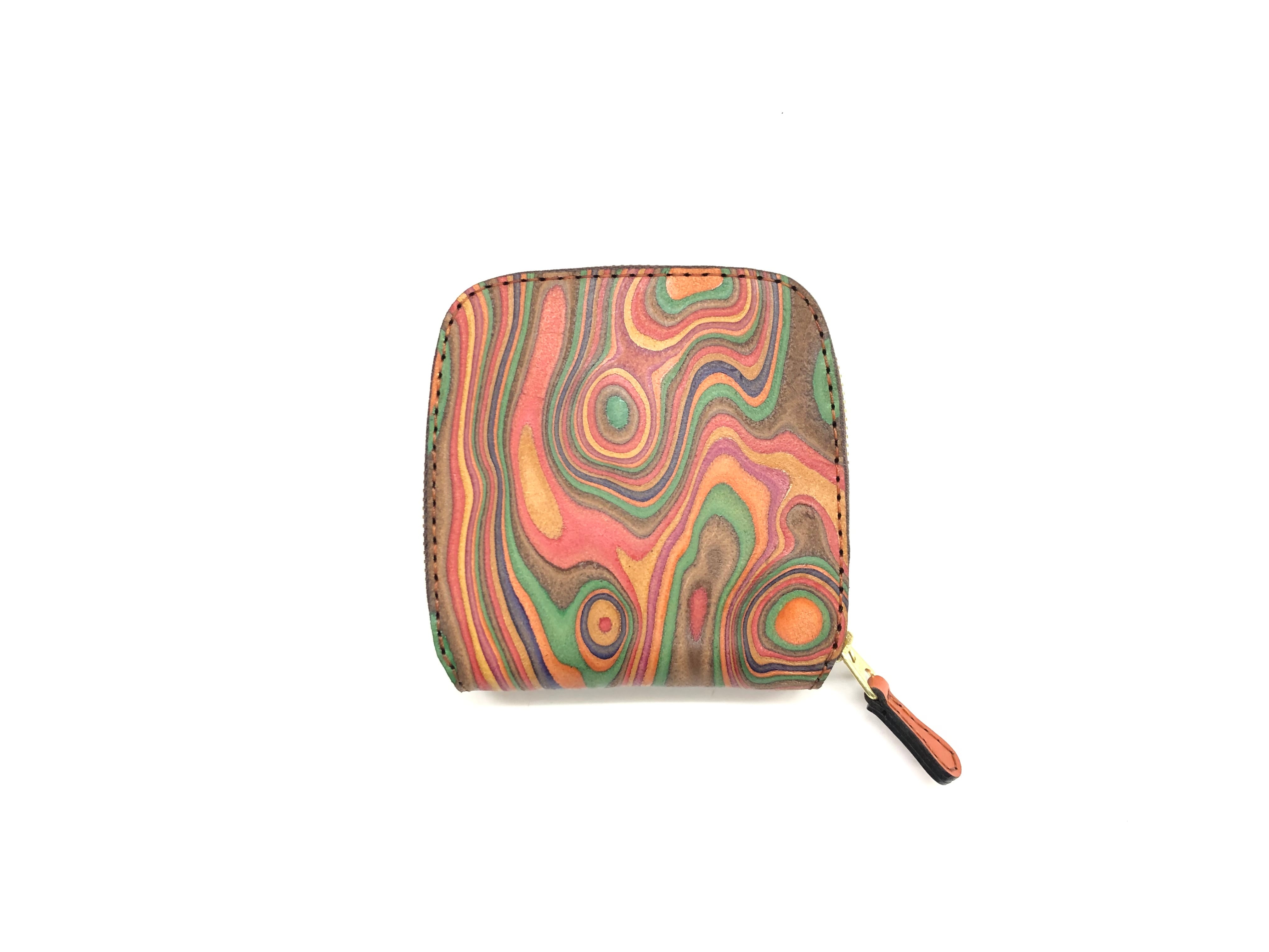 大久保氏が手掛ける、革を染色し、模様が出るように特殊な型押しをした何重枚何百枚の革を重ねて、漉き上げ木目やサイケデリックな模様作り出す、世界に1つのスペシャルなレザーになります。
