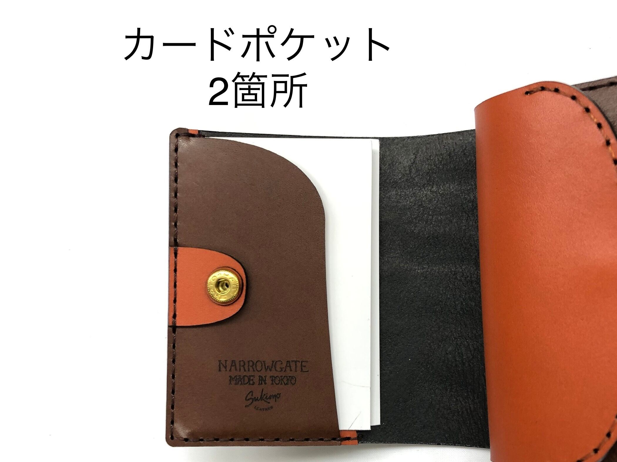 タンニン鞣しの姫路レザー牛ヌメ革とスキモレザーを使用し、手染め手縫いで仕上げております。
