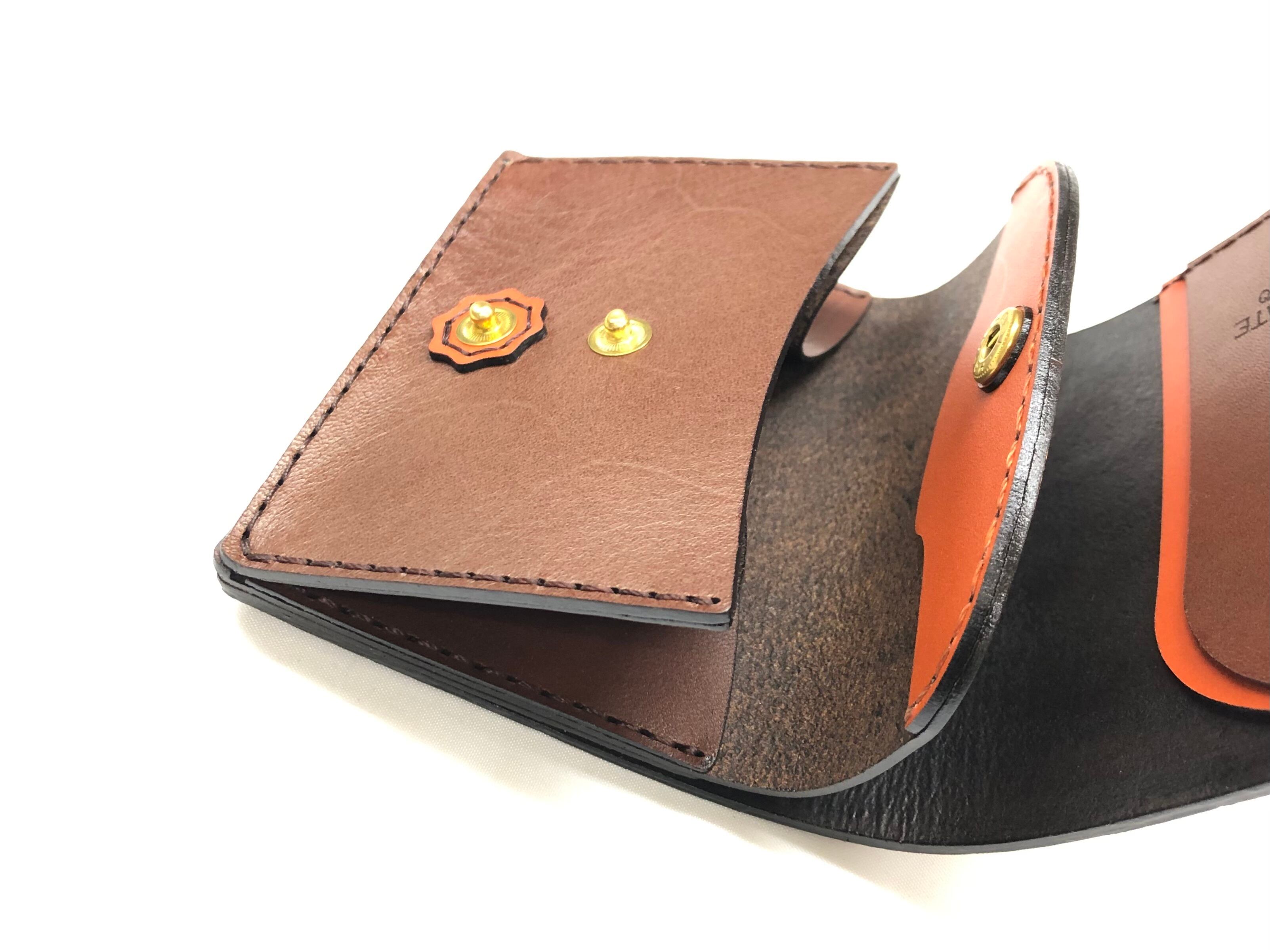 タンニン鞣しの姫路レザー牛ヌメ革とスキモレザーを使用し、手染め手縫いで仕上げております。