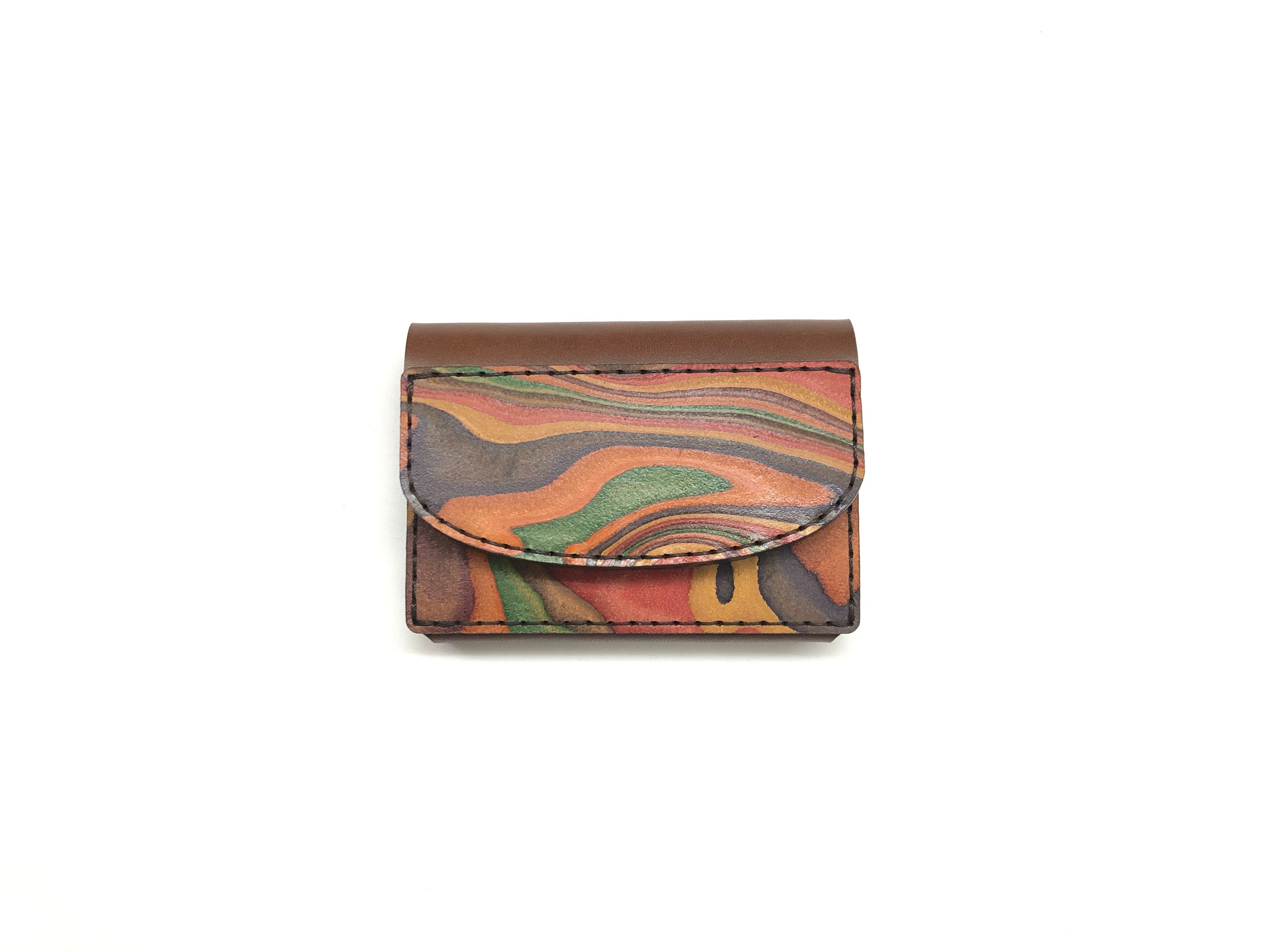 大久保氏が手掛ける、革を染色し、模様が出るように特殊な型押しをした何重枚何百枚の革を重ねて、漉き上げ木目やサイケデリックな模様作り出す、世界に1つのスペシャルなレザーになります。