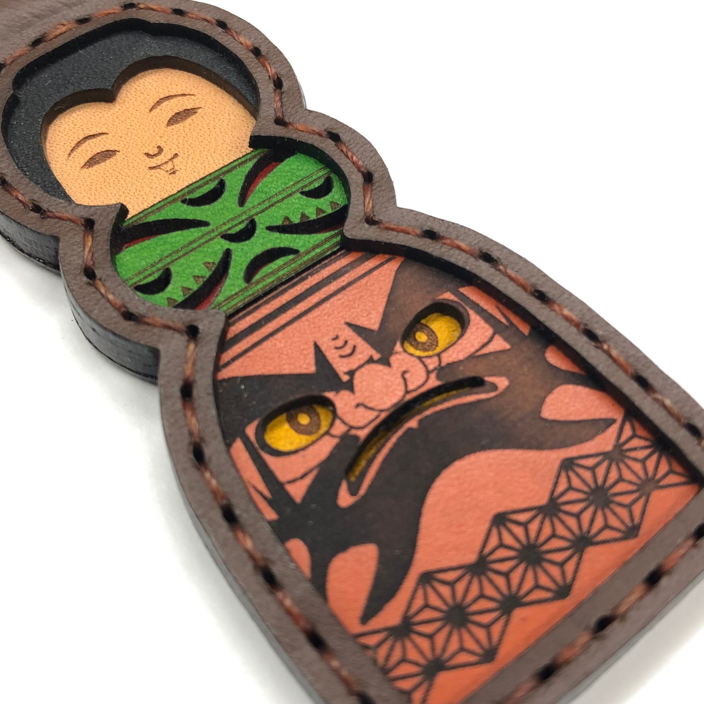 日本の伝統文化で津軽エリアに伝わるアイヌ柄と達磨絵が描かれた津軽こけしのキーホルダーです!