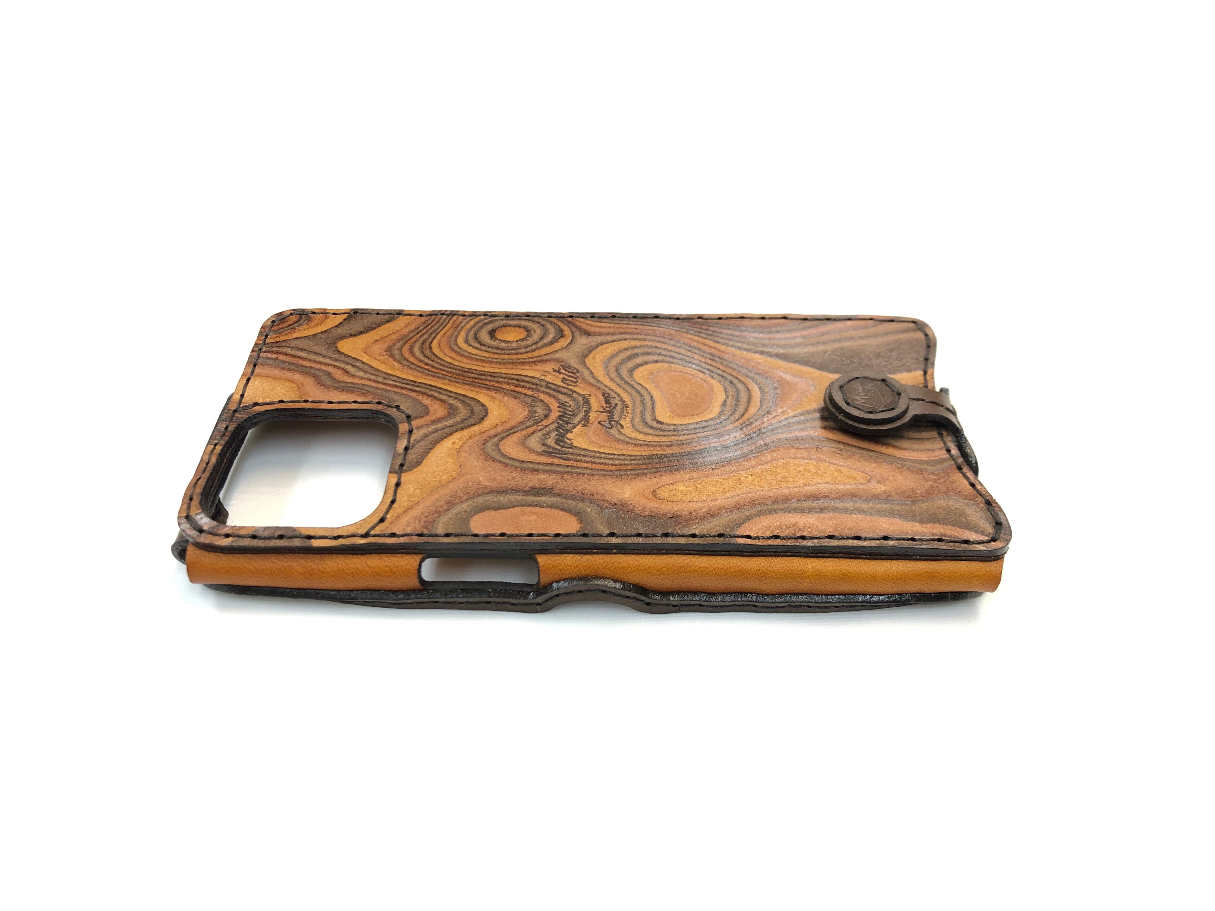 本作品はタンニン鞣しの姫路レザー牛ヌメ革と世界に1つのスキモレザーを使用した手染め、手縫い仕上げのフィット感を追及したオールレザー極上ケースになります。