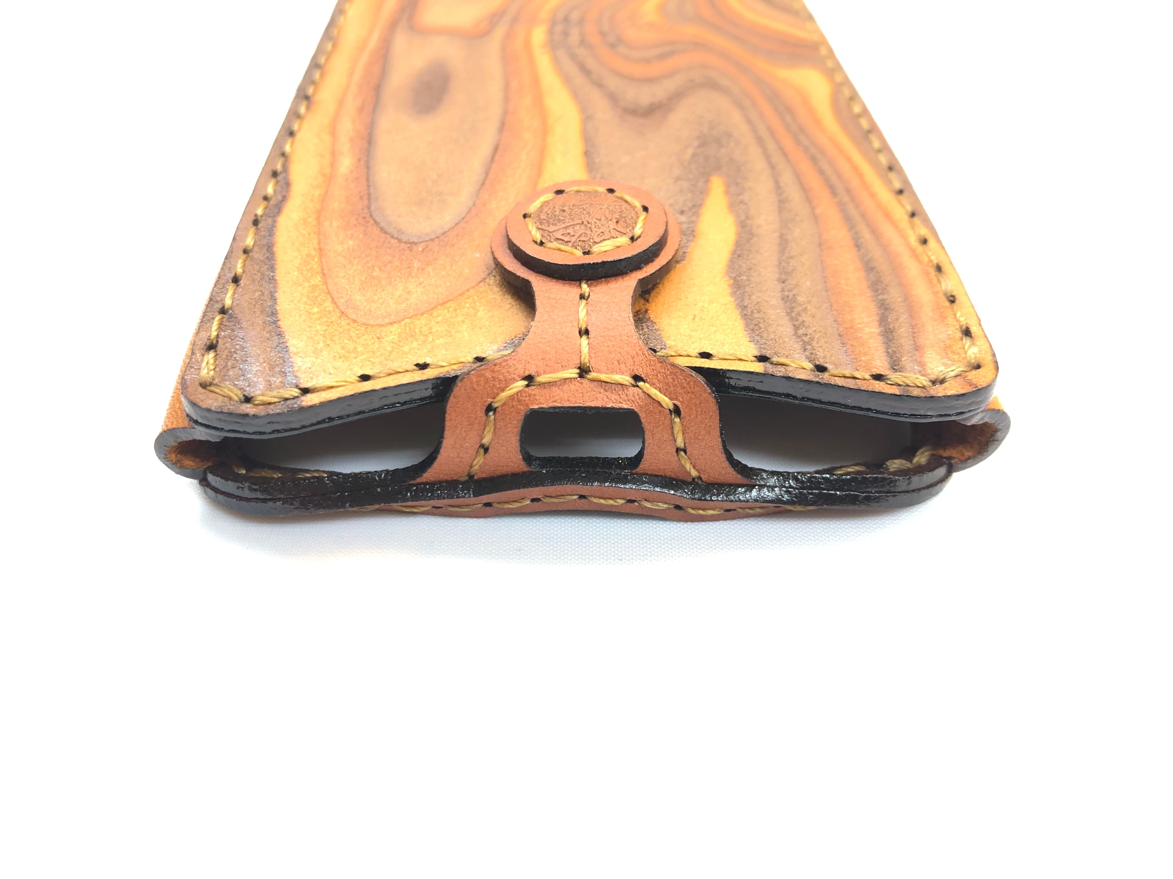 本作品はタンニン鞣しの姫路レザー牛ヌメ革と世界に1つのスキモレザーを使用した手染め、手縫い仕上げのフィット感を追及したオールレザー極上ケースになります。